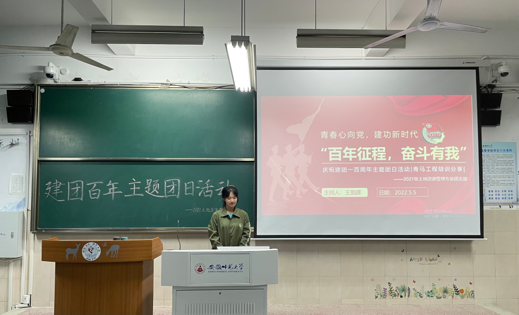 本网讯(565net必赢客户端 赖姝媛)百年建团铸辉煌,初心如磐向未来。为庆祝中国共产主义青年团成立100周年,激昂青春奋斗,追寻信仰之光,5月9日晚,2021级土地资源管理专业在行知楼2040202举行“百年征程,奋斗有我”主题团日活动。本次会议由团支书王凱鐸主持。