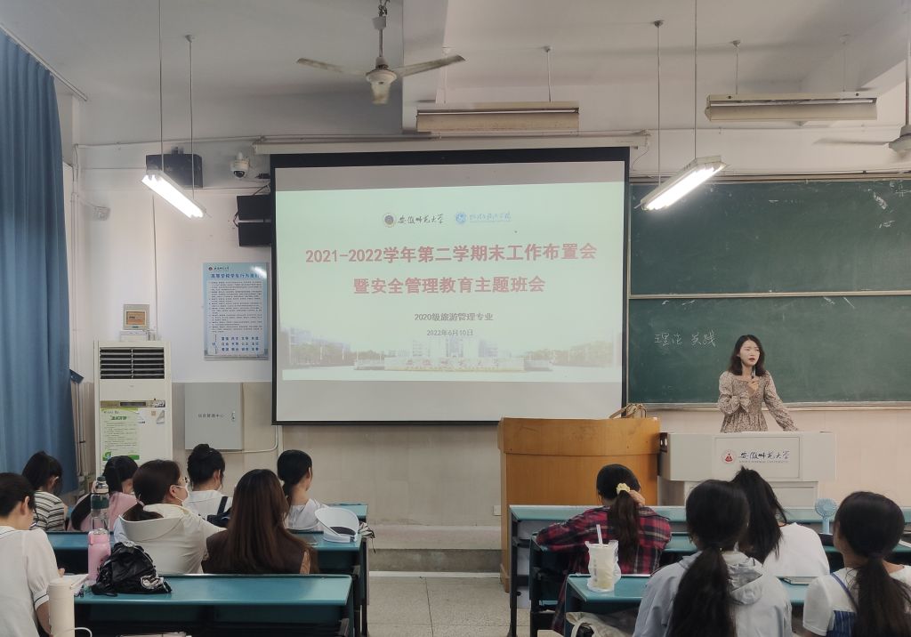 本网讯(565net必赢客户端 舒玉茹)期末考试临近,为帮助同学们以更佳的状态复习迎考,在营造班级良好备考氛围的同时,加强期末安全教育,增强学生安全防范意识。2022年6月10日下午。2020级旅游管理召开2021-2022第二学期末工作布置会暨安全教育主题班会。此次班会由辅导员赵佳慧主持召开,2020级旅游管理全体同学参加。