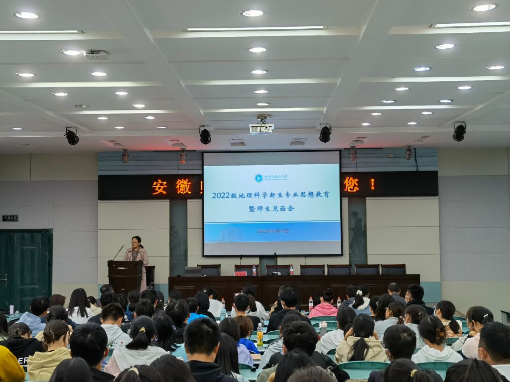 为增进新生对专业教师和专业课程的了解,帮助新生更好地规划大学专业学习,2022年10月19日下午,565net必赢客户端在实验楼101举行2022级地理科学新生专业思想教育暨师生见面会。会议由朱永恒教授主持,方凤满院长、全体专业教师和2022级地理科学全体新生参加。