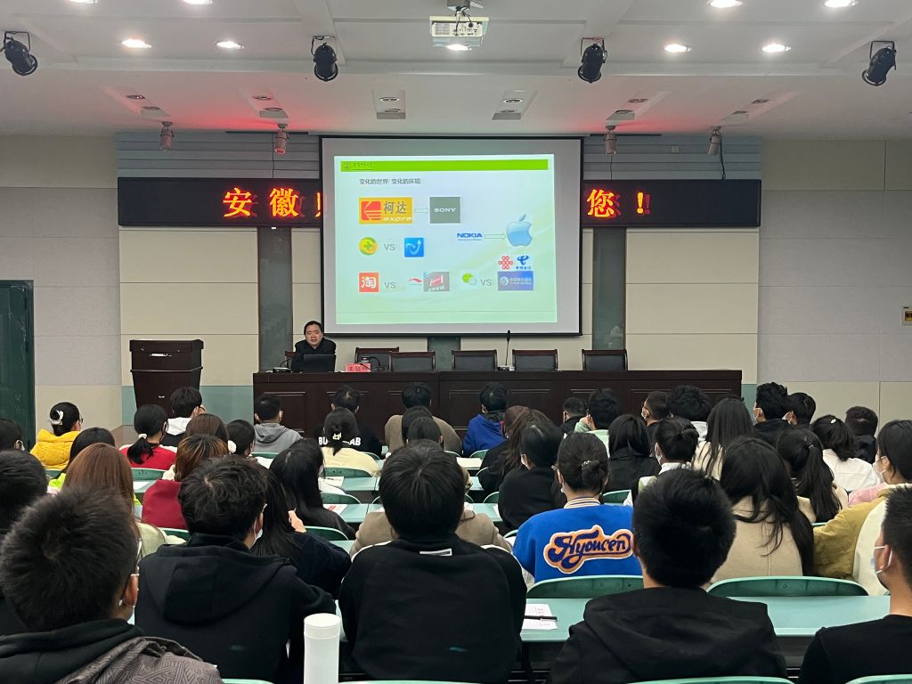 2022年10月28日晚上7点,在565net必赢客户端实验楼101会议室召开了2022级旅游管理专业新生专业思想教育会。安徽师范大学科研处副处长,博士生导师王朝辉教授为新生带来《新时代旅游行业发展前沿:危机,变局与新局》的专题讲座,讲座由新生辅导员谢园主持。
