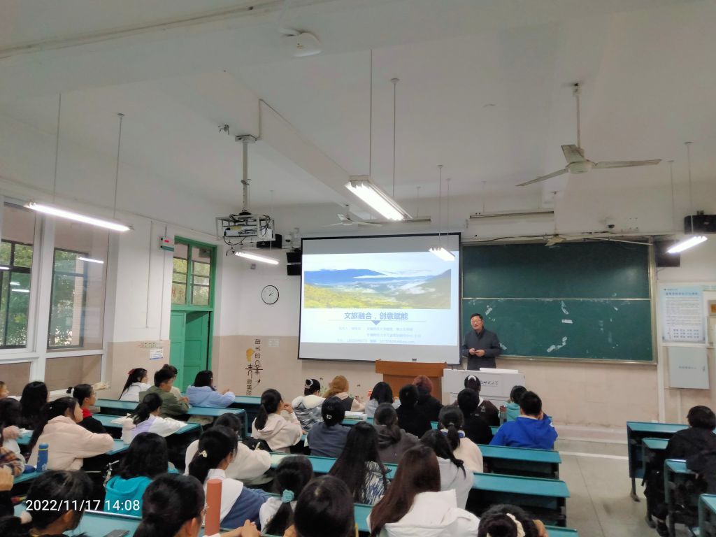 11月17日下午两点,在行知楼4号楼101教室,杨效忠、王群教授为2022级旅游管理作专业思想教育报告会。安师大文化旅游策划研究中心主任杨效忠教授为新生带来《文旅融合,创意赋能》专题讲座,旅游管理专业硕士学位点负责人王群教授为新生带来《如何更好适应大学生活》专题讲座,报告会由王莉副教授主持,2022级旅游管理专业全体新生参加。