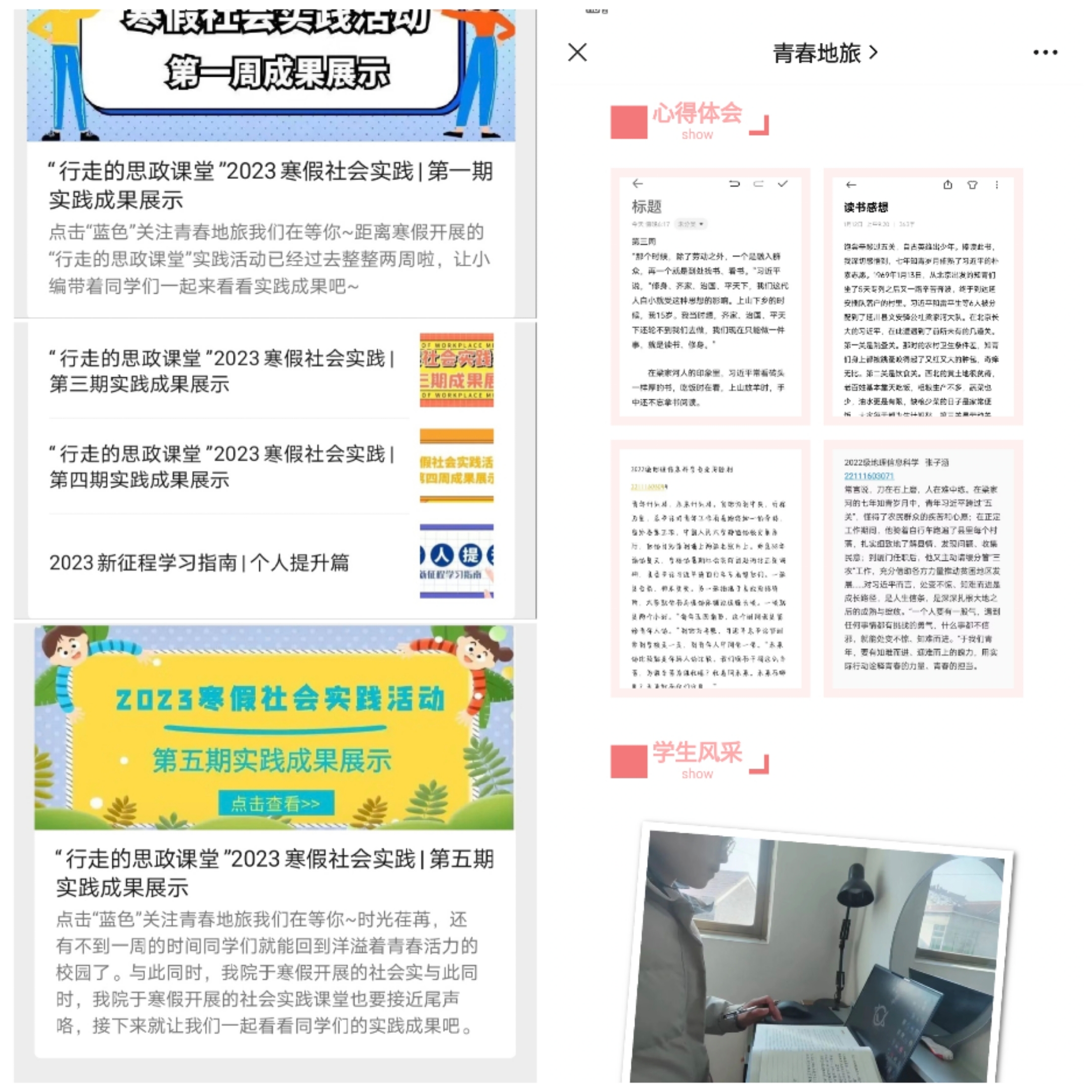 为深入学习宣传贯彻党的二十大精神,持续提升“行走的思政课堂”实践育人内涵,565net必赢客户端积极组织开展2023年寒假实践活动,引导学生增强理想信念、发挥专业优势、体悟观察社会,提升实践能力。