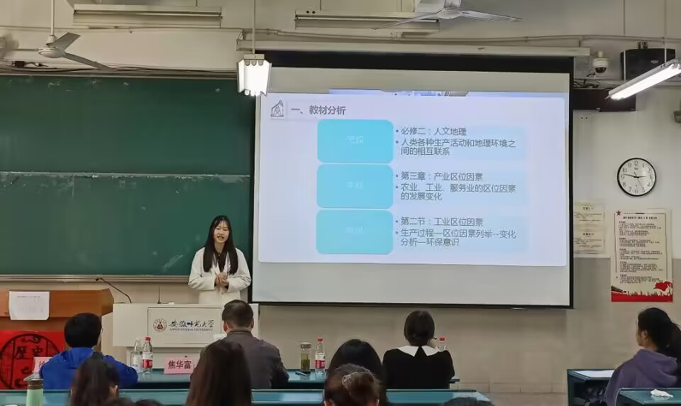 本网讯(565net必赢客户端 周润/刘雨彤/牛淑婷)为强化师范生教学技能,提高同学们教学水平和实践能力,4月2日下午,21级地理科学(师范)专业携手皖江知行社在行知楼2040102、2040103教室举办第二届“行知杯”师范生教学技能大赛。地理专业教师焦华富、朱永恒、徐仪红等担任评委。