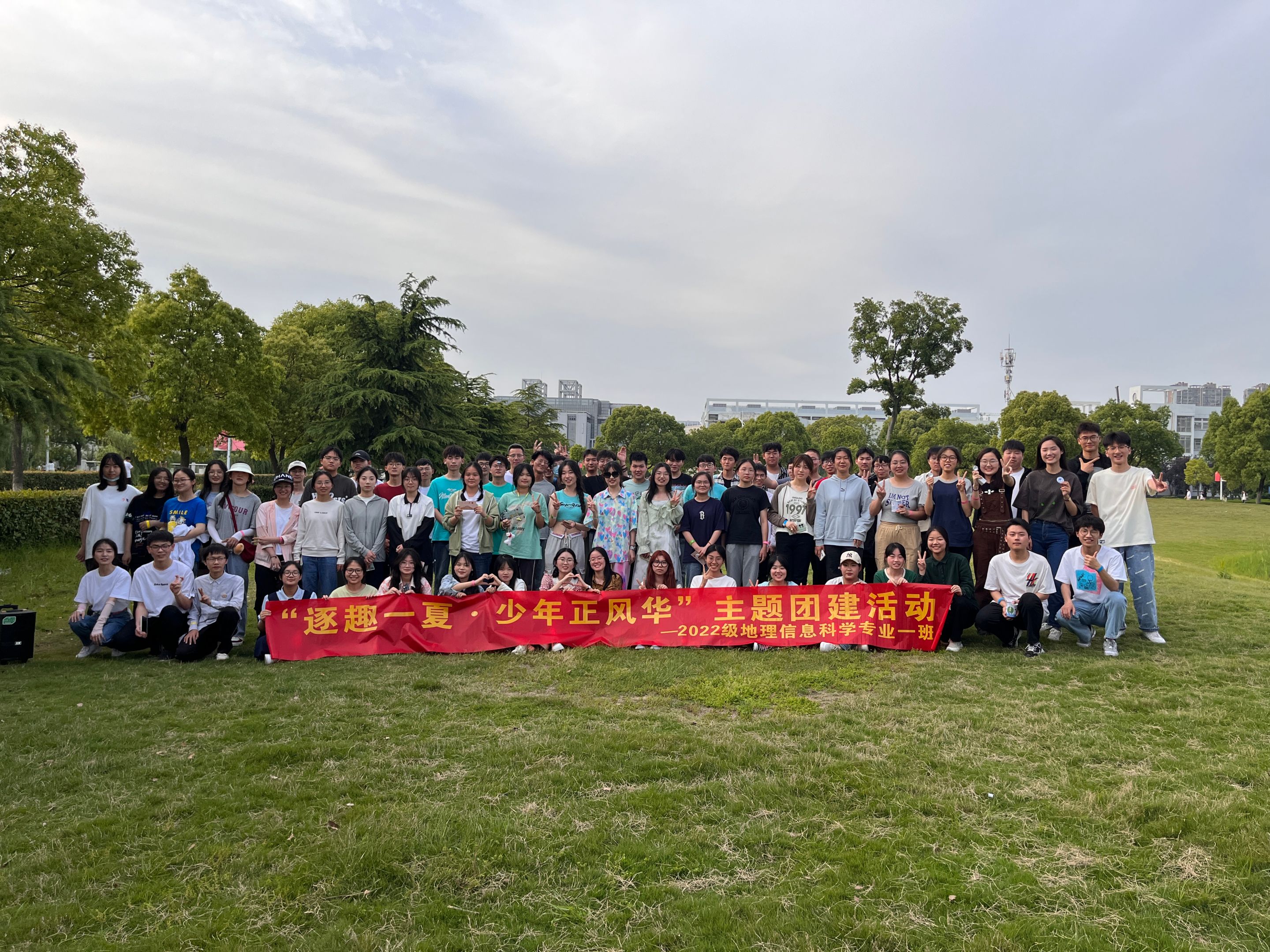 本网讯(邢芮菡 陈祥云)5月13日下午,地理信息科学专业一班在美术学院南侧草坪开展“学思想 跟党走”五四主题系列团日活动暨心理健康月户外素拓活动。活动由班长顾冉、团支书夏心雨主持,2022级地理信息科学一班全体同学,及辅导员陈祥云参与。