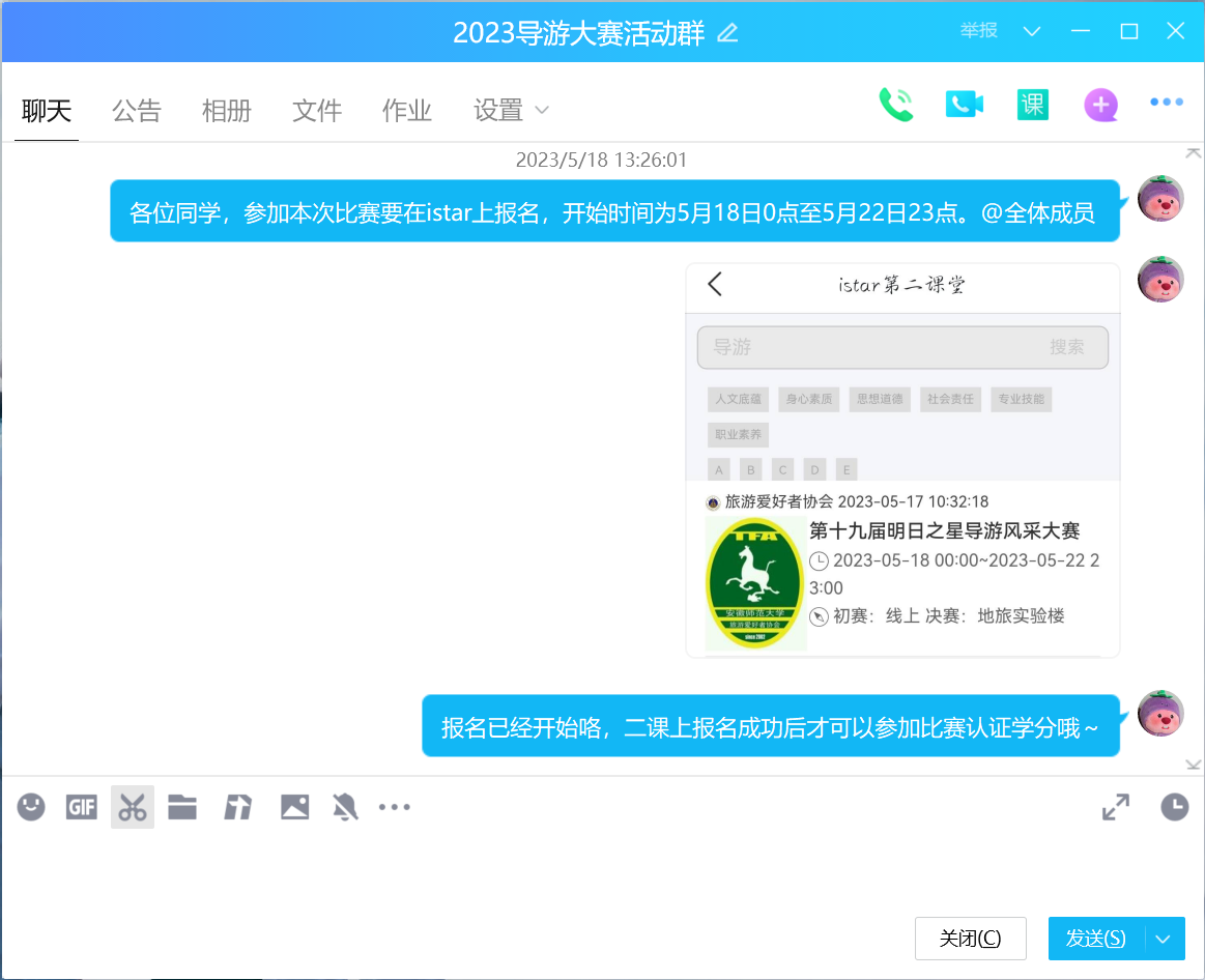 在活动的前期宣传中,各部门工作人员合理分工,相互间积极配合,宣传效果显著,活动持续火热。本届“明日之星”导游风采大赛分为初赛和决赛进行。初赛采用线上答题的方式,考察导游基础知识,最终14名选手进入决赛。入围决赛选手自选符合本次活动主题的红色旅游景(区),制作PPT并撰写导游词,并进行现场导游模拟展示。