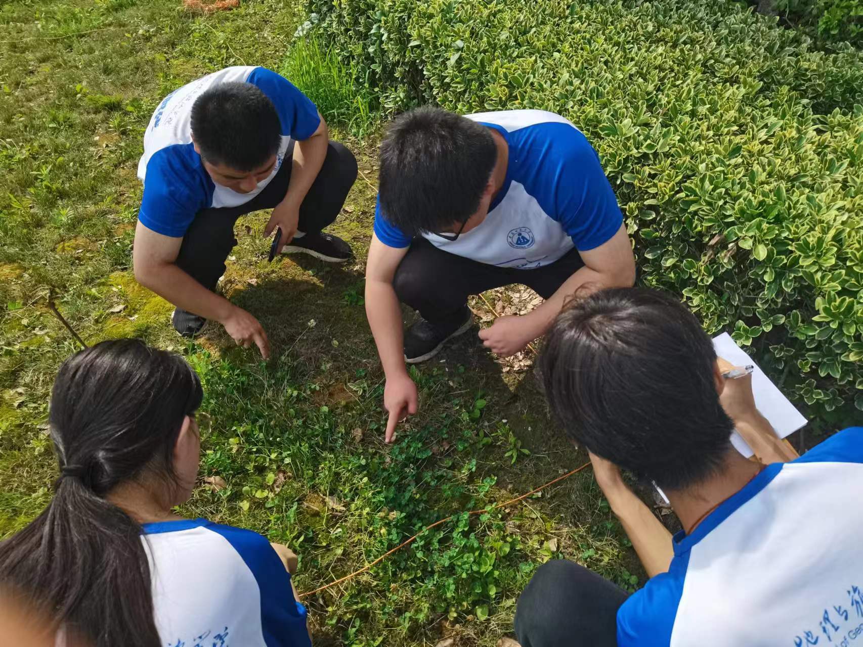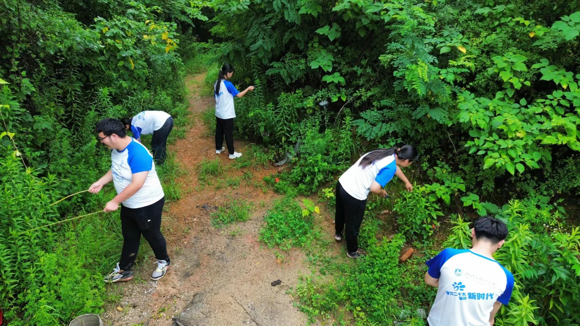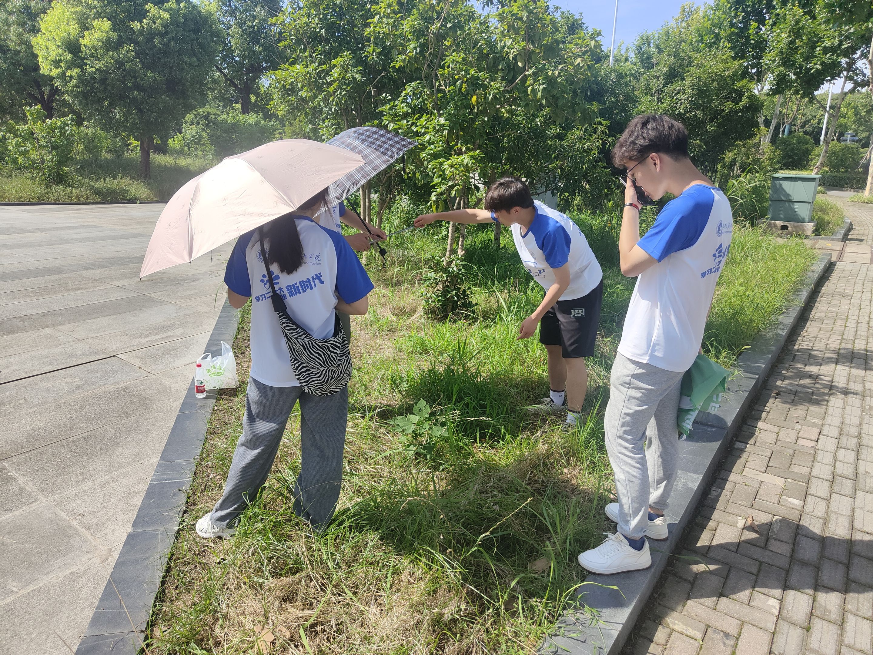 三天的时间里,三支小队前往了十里江湾、春鸠兹生态公园、银湖公园、白马山等多地进行调研。队员们秉承着严谨的研究态度,精益求精,切实做好样方的选取、植物密度和盖度的计算工作,以确保研究结果的准确性。三天的时间里,队员们经历了三十多度的高温,也经历了瓢泼的大雨,但是这丝毫没有阻挡队员们的研究脚步。待到风止雨歇,成员们依旧一丝不苟地工作,展现了地理人不惧风雨、勇于攀登的风采。