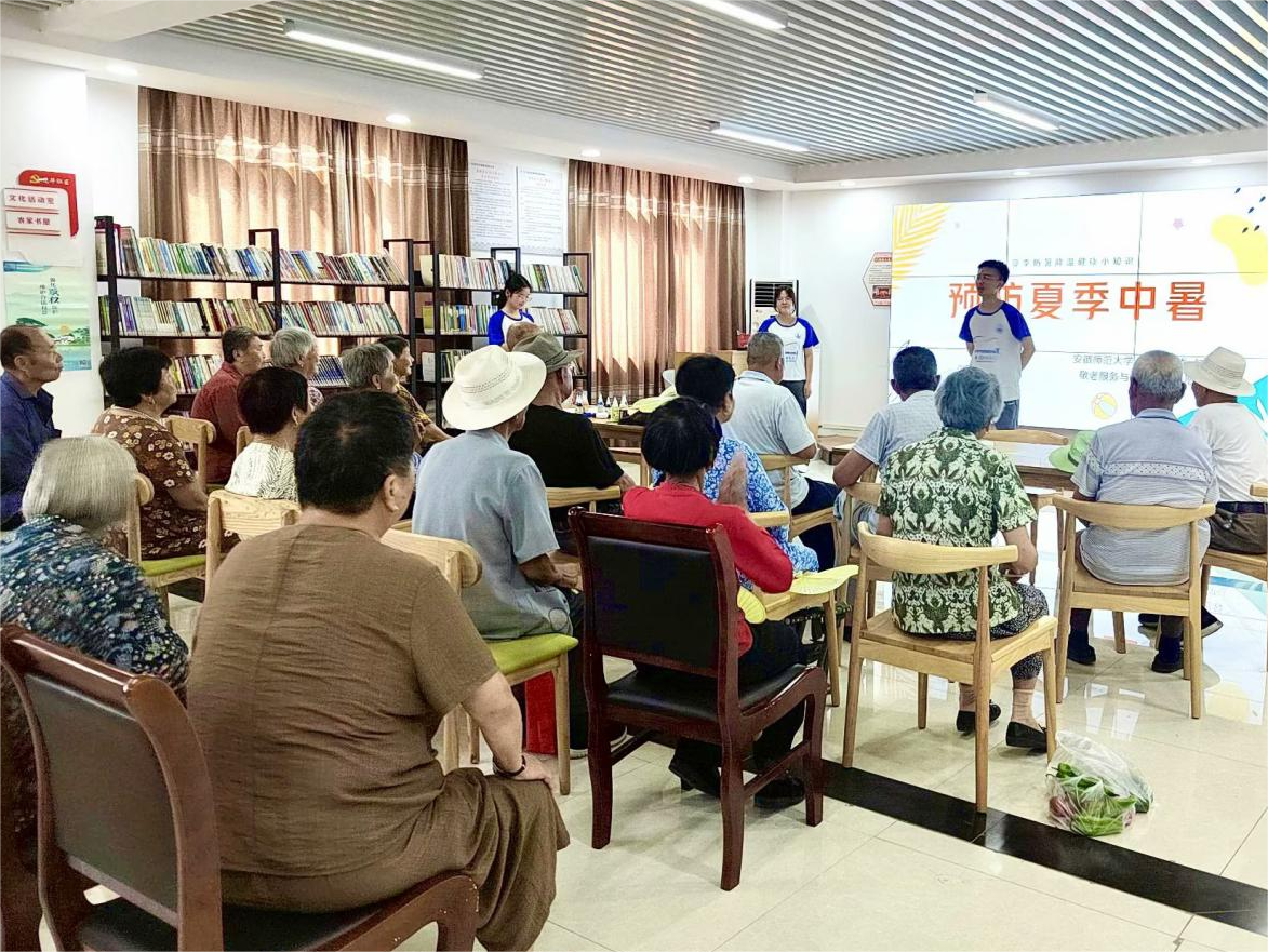 团队以知识宣讲的方式拉开活动序幕,队长牛双双向老人们宣传了暑期防暑知识,期间积极地与台下的老人们互动,并结合知识竞答,让晦涩难懂的防暑小知识变得更加通俗易懂,深入人心。