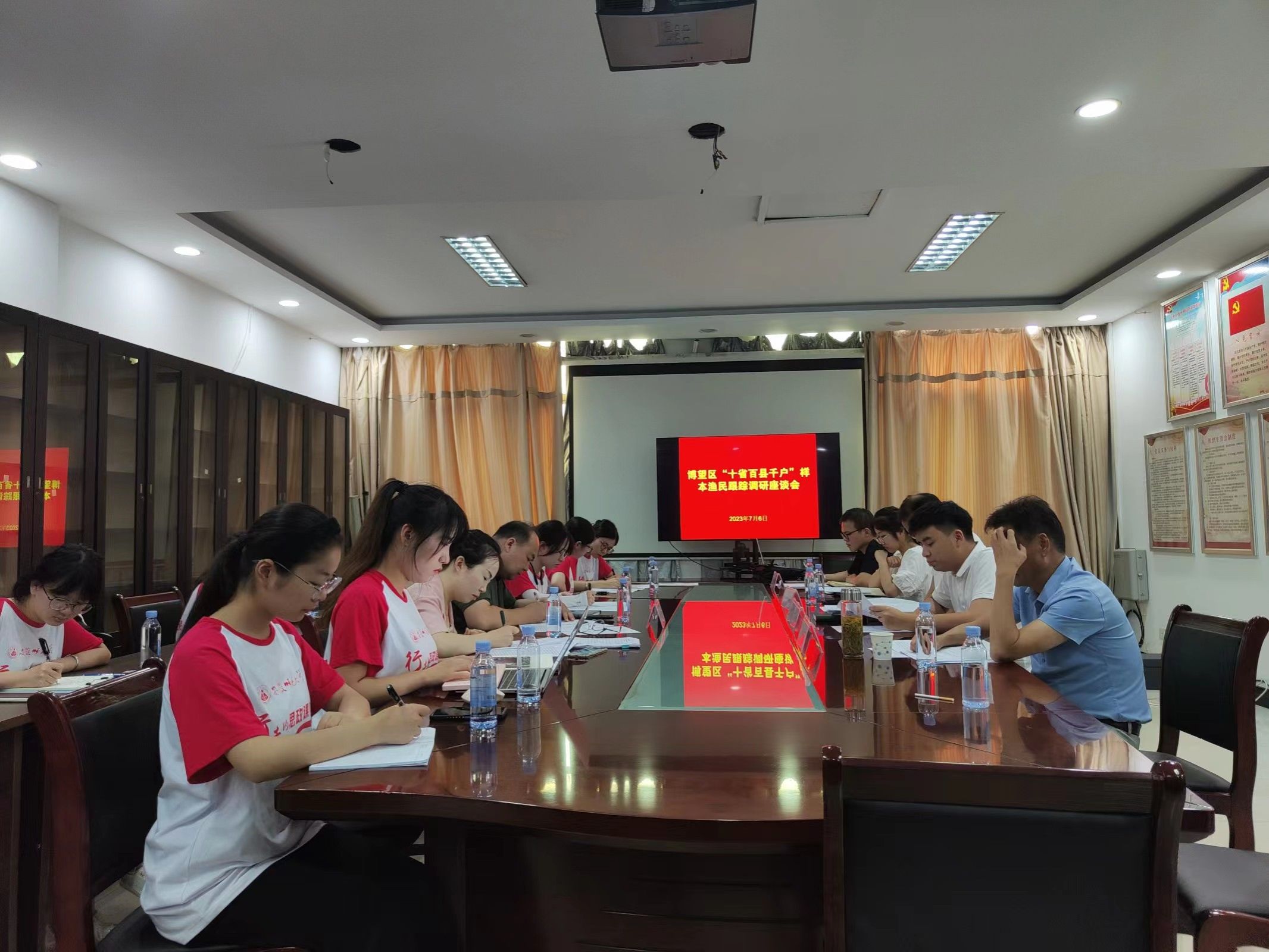 上午,团队首先在博望区农业农村水利局与相关政府工作人员开展博望区“十省百县千户”样本渔民跟踪调研座谈会。区禁捕办、区人社局、博望镇、丹阳镇工作人员介绍长江退捕渔民工作开展情况,杨钊教授针对相关工作内容与政府人员进行讨论并询问退捕渔民生计状况。