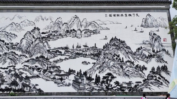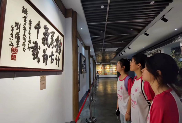 团队首先来到了鸠兹古镇,在这里,各种传统文物交相辉映,铁画是其中耀眼的一员。除了铁画馆里陈列着的各类精美的铁画,在宣传栏上,在馆口招牌上,在各个小小的角落里都能发现铁画的身影。在馆内人员的介绍下,团队来到了世界上最大的铁画--《天下徽商兴于鸠兹》面前,该画长15.77米,高7.35米,气势恢宏,其细致令人震撼,透着传奇般徽文化基因。