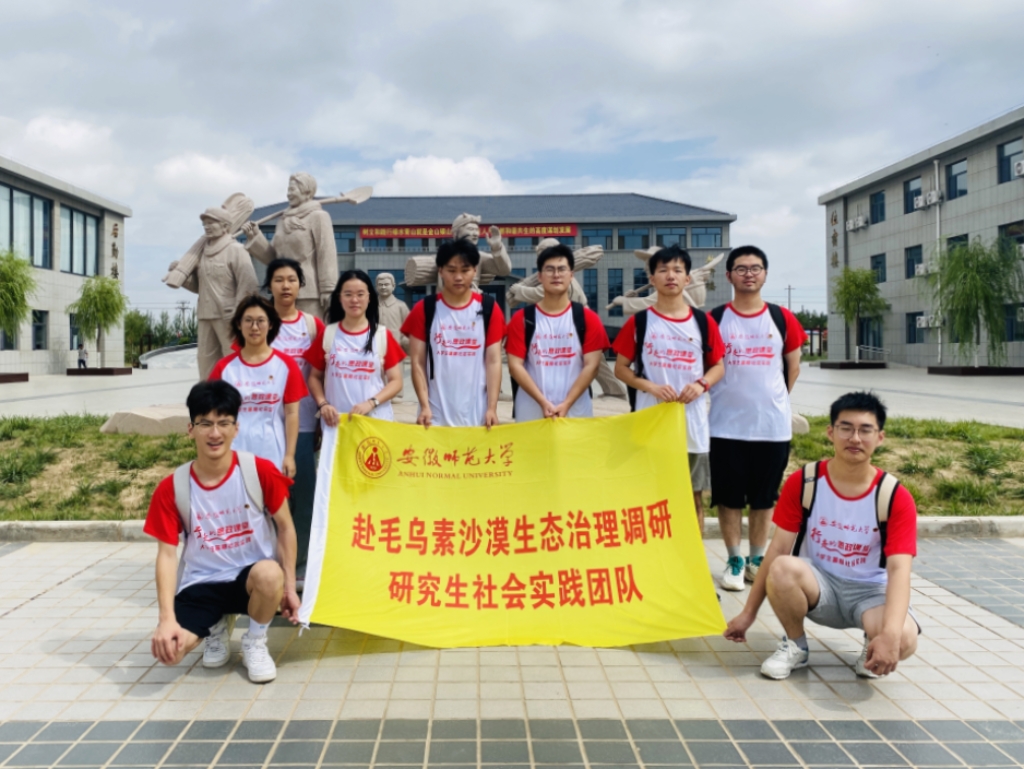 为牢固树立“绿水青山就是金山银山”的发展理念,让“绿色低碳”“科学治沙”“二次绿色革命”的理念深入人心,安徽师范大学565net必赢客户端赴毛乌素沙漠生态治理团队(以下简称“团队”)于2023年8月从安徽省芜湖市出发,来到陕西省榆林市靖边县开展大学生暑期社会实践活动。