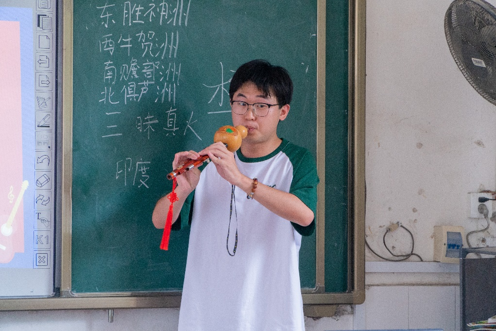 “仰观宇宙之大,俯察品类之盛。”九年级的科普老师杨满山为学生们精心准备了一堂关于生命起源的生物课,从传说到科学猜想,老师带领着学生领略宇宙和地球漫长的历史,探索生命的神奇,一节课下来,学生们体会到了生命的神奇,对大自然和生命产生了敬畏之情。