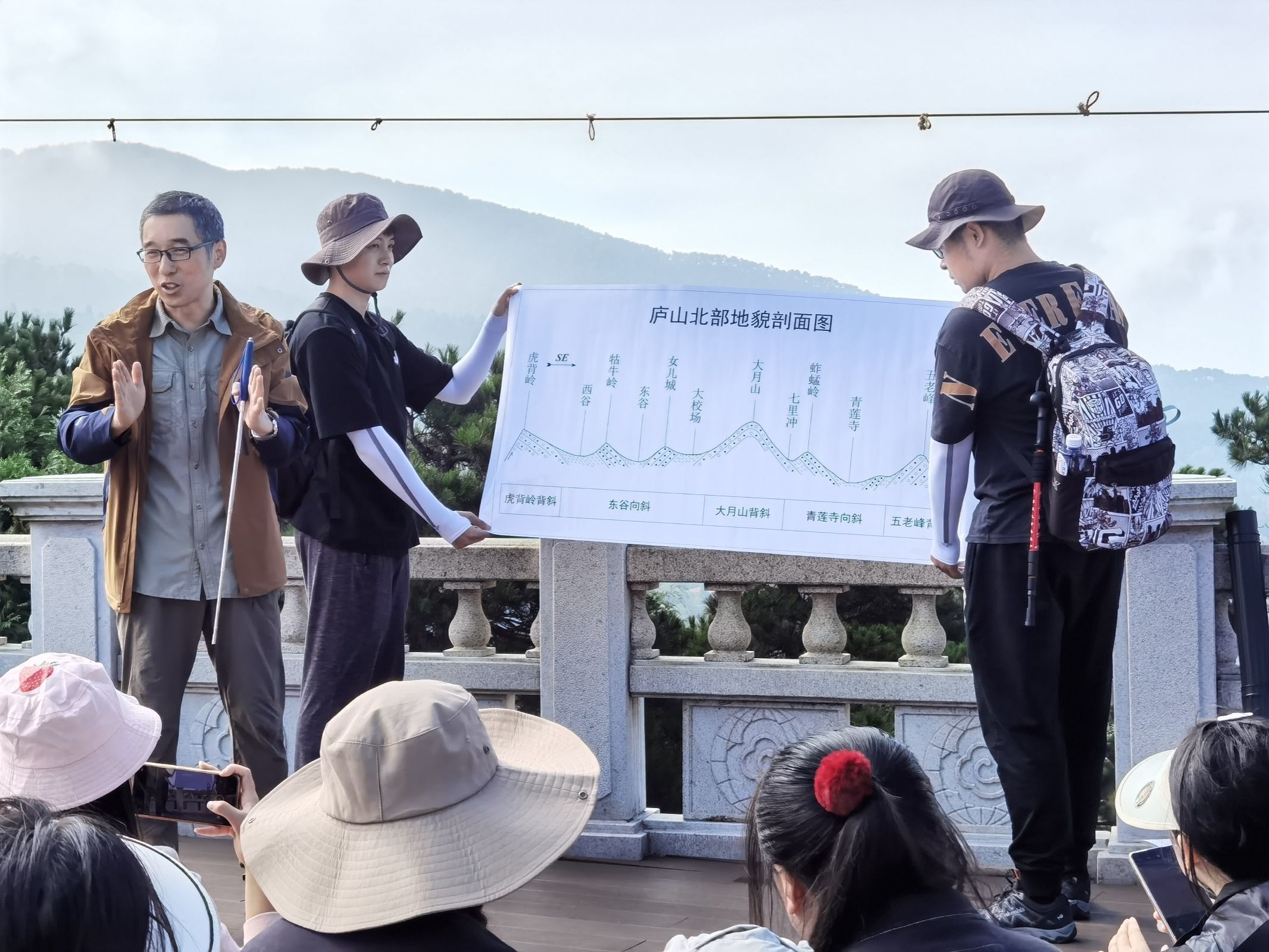 庐山因其丰富植被、地质遗迹、自然生态、地理气候等诸多因素而受国内各大院校青睐,成为理想的实习教育基地,庐山野外实习也一直都是地旅学子重要的专业实践课程。于2020级地信的学生而言,这更是一曲折难忘的经历,因疫情等因素限制,几经周折,原定2022年9月的实习终在今年9月完成,“志之所趋,无远弗届”,胡春生老师表示,“最终我们完成了一场真正的实习,不是任何其他的替代性方案”。