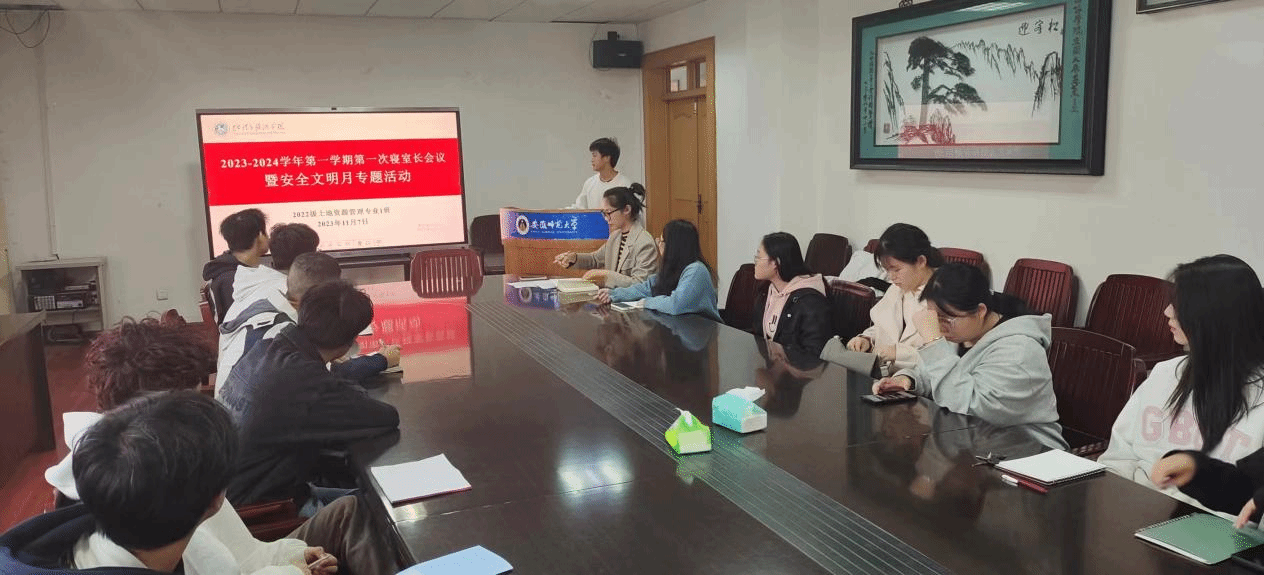 本网讯(565net必赢客户端 徐玉峰)近日,2022级土地资源管理专业在565net必赢客户端三楼会议室开展安全文明月启动会暨2023-2024学年第一次寝室长会议。会议旨在加强寝室安全管理,提升学生的文明素质,为学生提供一个良好的学习和生活环境。会议由生活委员徐玉峰主持,安全委员李信安担任记录人,辅导员陈祥云及2022级土地资源管理全体寝室长参加了此次会议。