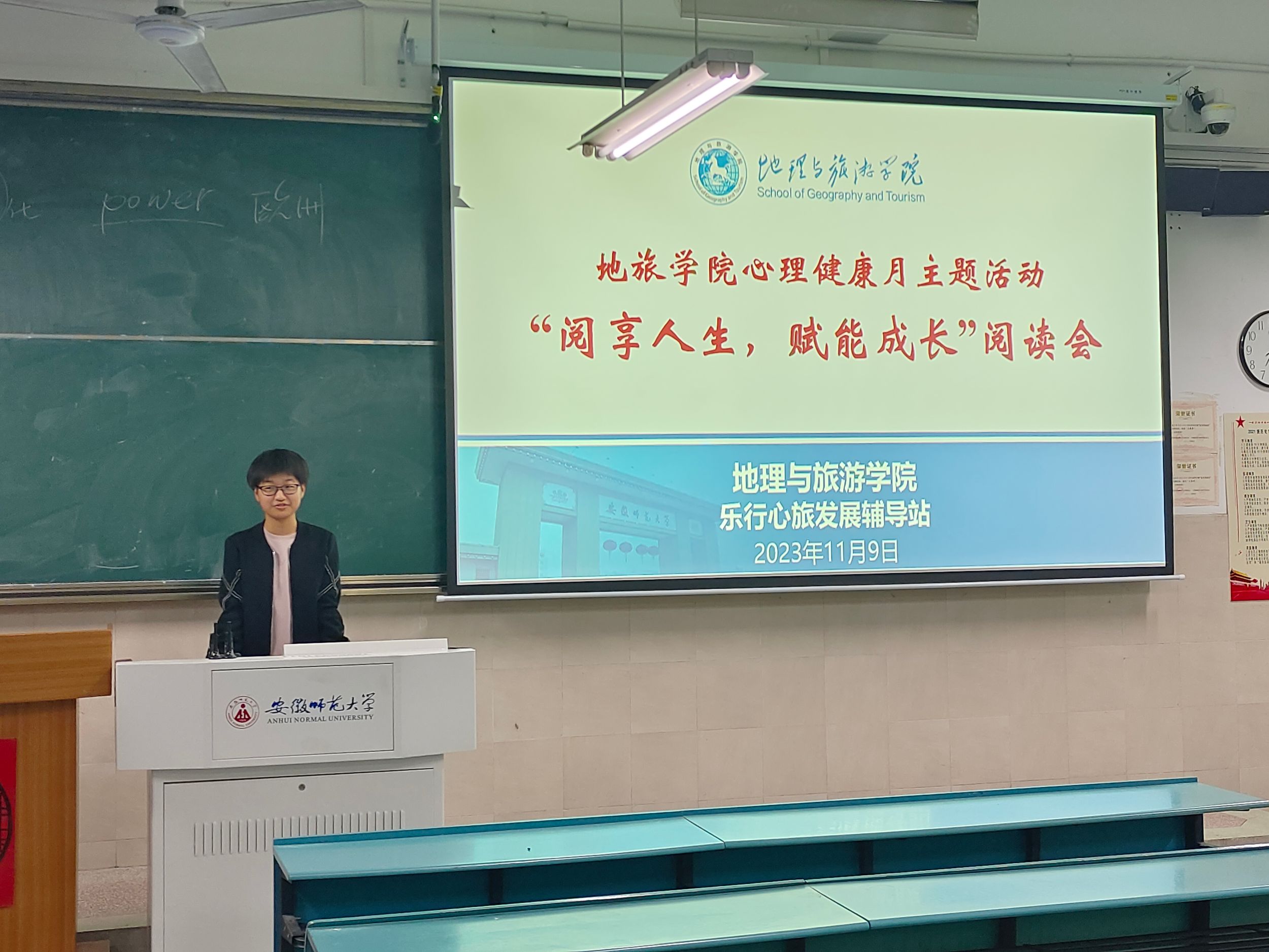 本网讯(魏语菲、陈祥云)11月10日晚,2022级地理信息科学专业1班在行知楼2040102教室开展心理健康主题班会暨心理健康月“阅享人生,赋能成长”主题阅读会。活动由心理委员战禹彤主持,2022级地理信息科学专业1班全体同学、学生会综合部部长施欣源、副部长徐叶繁参与。