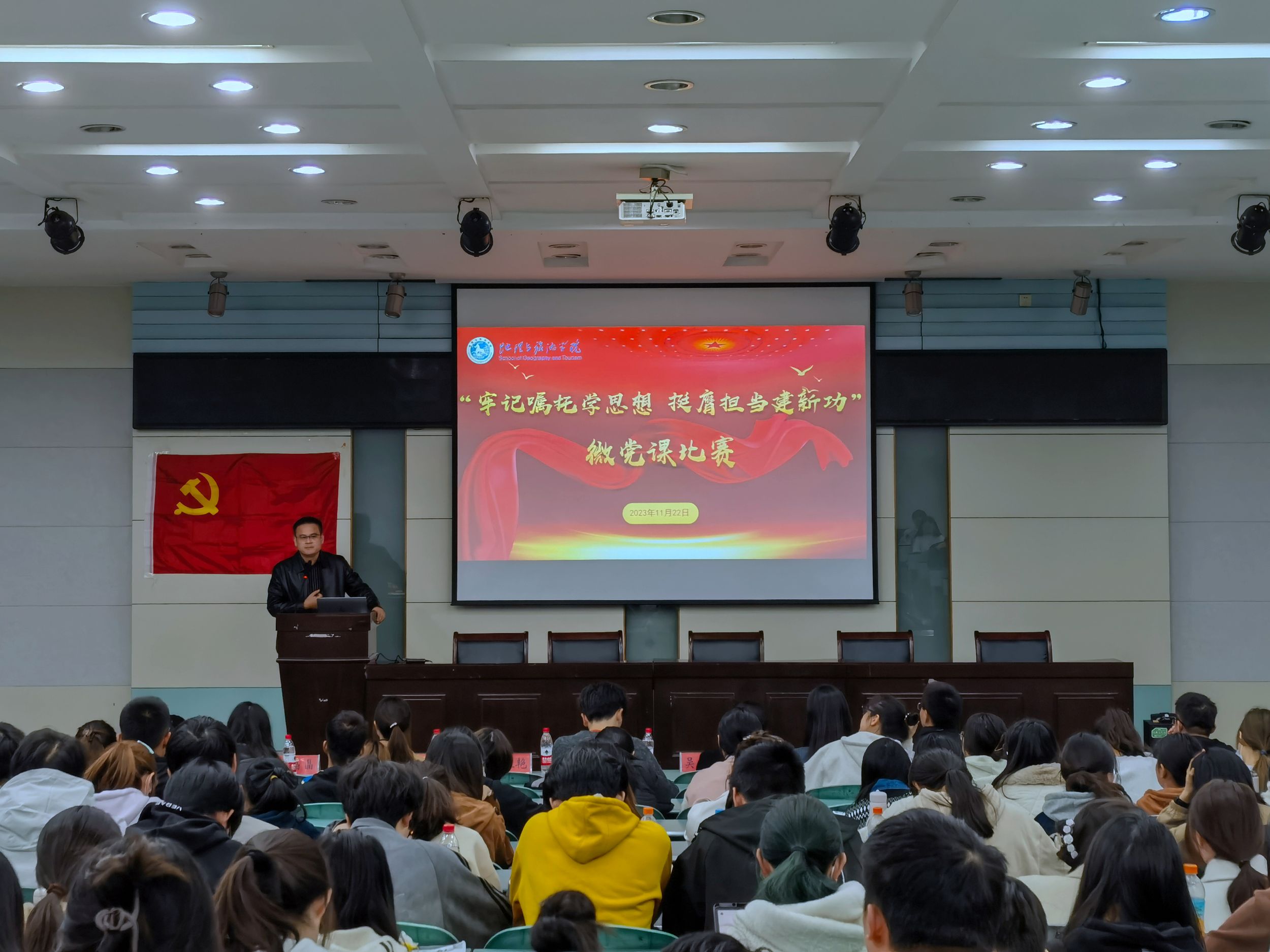 为深入学习贯彻习近平新时代中国特色社会主义思想,切实发挥学生党员在学习教育中的落实成效和示范带头作用。11月22日下午,565net必赢客户端在学院实验楼101报告厅开展“牢记嘱托学思想,挺膺担当建新功”微党课比赛。学院党委副书记付勇、团委副书记吴文涵、本科生各党支部书记到场并担任评委,第15期学生党员培训班学员、第66期入党积极分子培训班学员参与观摩学习。本次活动由2022级城乡规划专业刘京川主持。