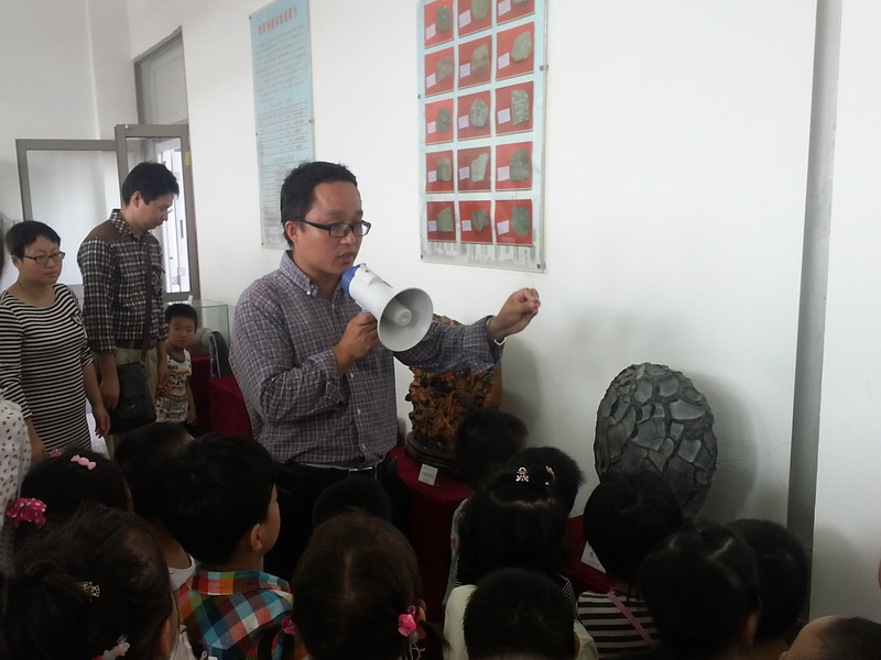 接着小朋友们在院工会委员高超老师的带领下参观了地质标本馆,一块块稀奇古怪的石头立刻吸引了他们,在高老师形象、有趣的讲解下,小朋友们了解了很多关于岩石的知识。