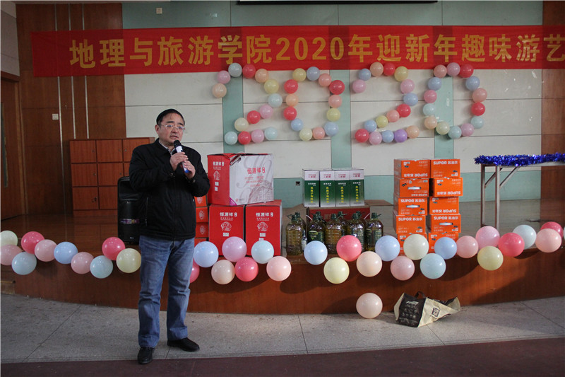 游艺会在欢声笑语中拉开序幕。活动尹始,苏勤院长发表致辞,他简要回顾了学院一年来取得的成绩,对全体教职工辛勤工作表示感谢,并向大家通报了必赢地理科学和旅游管理两个专业获批国家级一流本科专业建设点的喜讯和对2020年新的展望,鼓励大家再接再厉,更上一层楼。