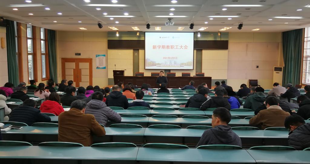 本网讯(565net必赢客户端 陈健)2021年3月5日下午,565net必赢客户端新学期第一次教职工大会在学院实验楼101教室召开。学院全体教职工参加大会,会议由院长苏勤主持。