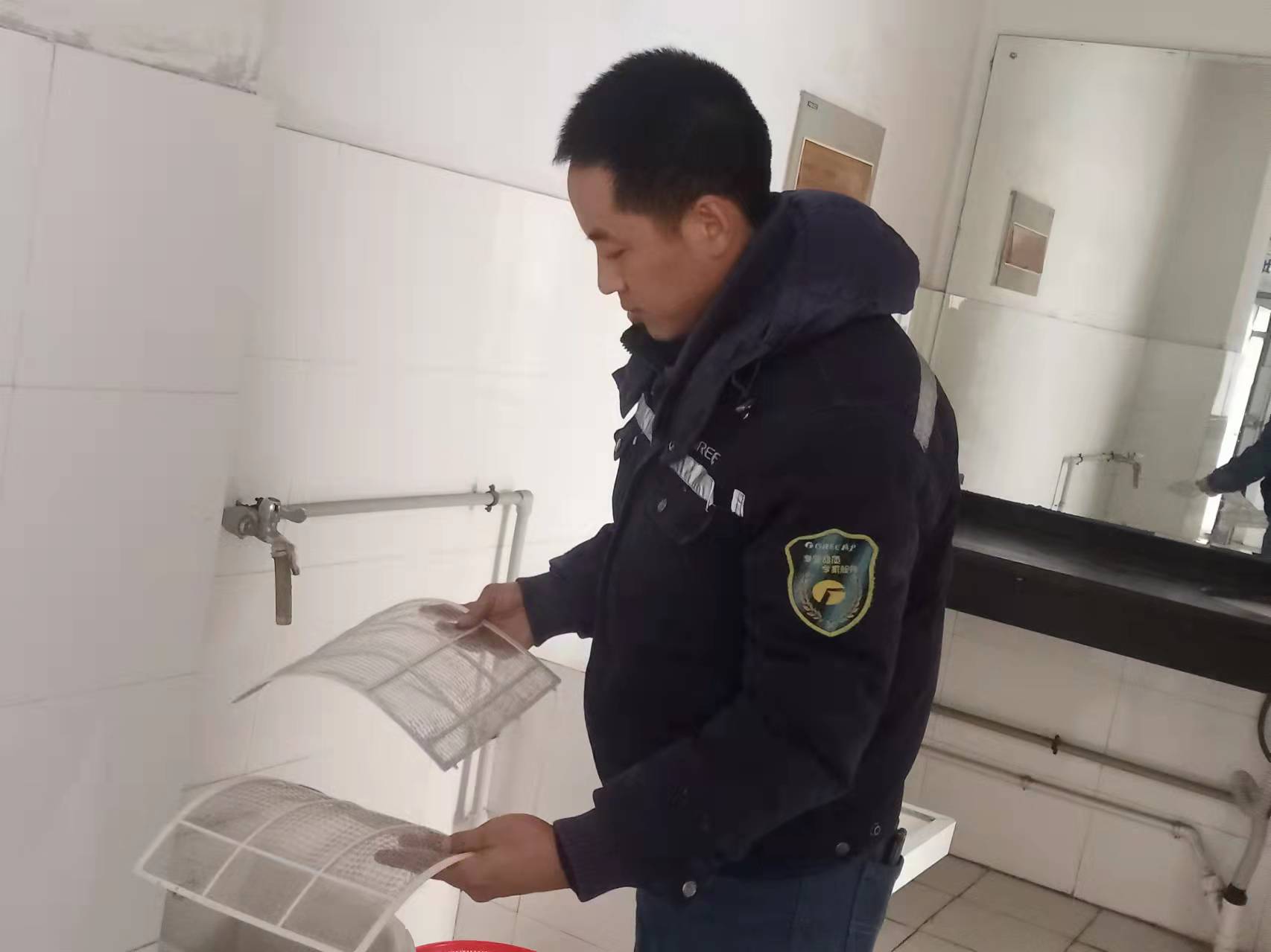 565net必赢客户端:清洗办公空调,为教师送上“健康礼”