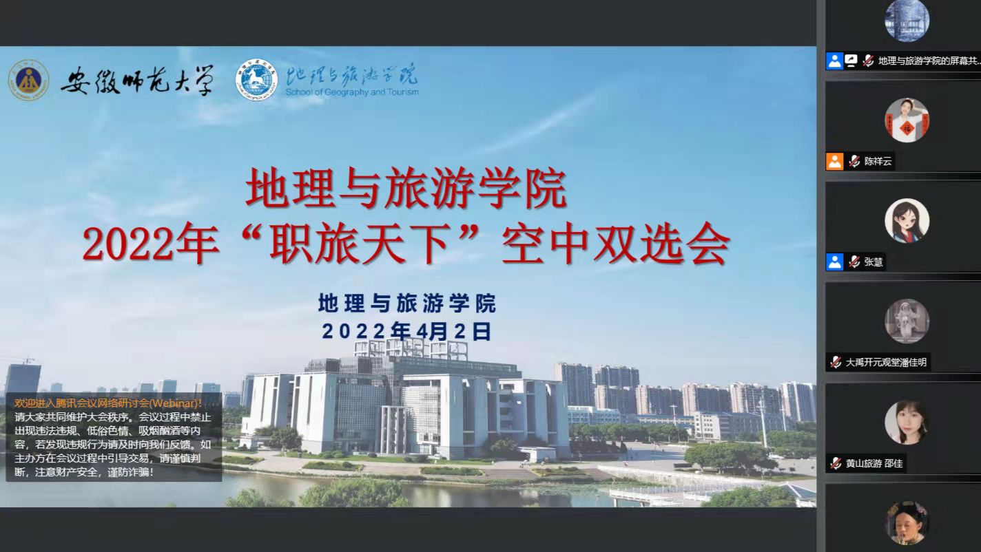 4月2日,565net必赢客户端在学院行政楼三楼会议室及腾讯会议平台举办2022年“职旅天下”空中双选会。本次双选会采取企业线上宣讲,学生线上+线下参会模式,会议由毕业班辅导员陈祥云、张慧主持。两场双选会共计14家用人单位参会,提供就业岗位200余个,学院300余名毕业生参加求职应聘。