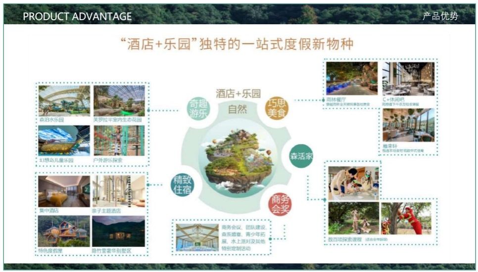 杭州开元森泊度假乐园坐落于萧山湘湖旅游度假区内,占地 300 亩,总投资 11.7 亿人民币,以“大自然”为原点,创新衍生出“精品度假”与 “奇趣游乐”两大核心板块,是集住宿、游乐、餐饮、商务为一体的全天候一站式休闲度假综合体。 乐园拥有 174 间度假酒店客房和散落林中的 238 间特色度假屋。更有星空房、城堡房、树屋等网红特色度假屋坐落于此。同时提供了 25000 平方米 的室内外森泊水乐园、占地超 3000 平方米的超大型儿童乐园、户外探索游乐、亲子自然课堂、地道当地美食等丰富多彩的休闲项目。 作为开元旅业集团的首个酒店+乐园泛度假综合体项目,杭州森泊开业至今的社交影响力和日常运营都十分火爆,已然成为华东休闲市场最强劲黑 马,2019 年江浙沪最受欢迎亲子乐园之一。