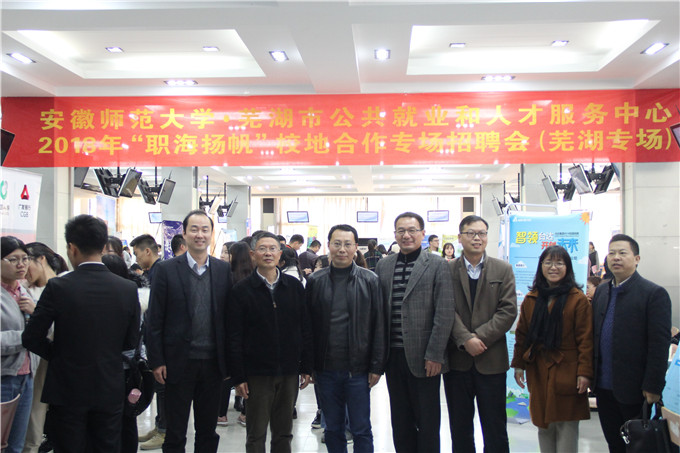 11月23日,由安徽师范大学、芜湖市公共就业和人才服务中心主办,565net必赢客户端承办,芜湖HR沙龙俱乐部协办的安徽师范大学“职海扬帆”校园招聘双选会在我校成功举办。50余家苏浙皖各类优质企业,12大专业门类,1000多个岗位,来自法国欧式、中国人寿等世界500强企业和奇瑞汽车、长信科技、三花控股、东旭光电等10家上市公司及浙江安吉、滁州等地8所公办学校等在内的企事业单位和前来招贤纳士。招聘会吸引了全校及周边高校2019届毕业生的到来。芜湖市公共就业和人才服务中心综合办主任段中华、科长高政铭,我校招生就业处副处长聂全高,565net必赢客户端党委书记贾冠忠,院党委副书记乔静,副院长曹卫东、赵冬梅,以及学院全体辅导员出席招聘会现场指导观摩。