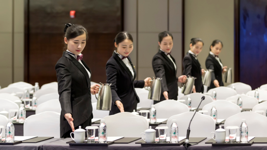 高级宴会服务师:高级宴会服务师是开元通过不断研究和完善专业化服务的过程中所产生的,也是凸显餐饮服务特色亮点,着力打造的专业特色服务队伍之一。其表现出的服务品位及服务表演,极大程度上满足了求新求异的宴会客人的需求,不断被消费者及业内所认同和赞誉。