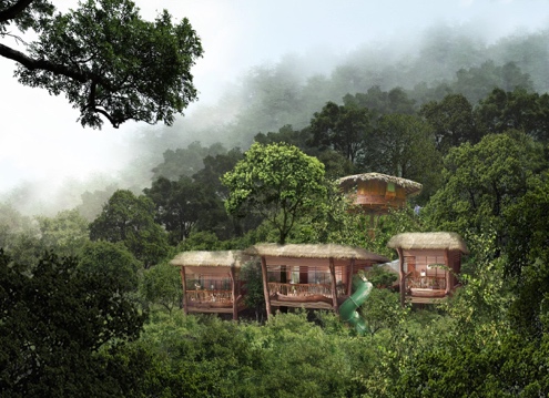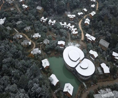 森泊度假乐园另一块核心地块是度假屋区,隔着中心湖,度假屋坐落在静谧的自然中,遥望的活力动感的中央设施。度假设施根据具体区位、现状地形、环境差异,规划布局不同特色的度假产品,在茶园地区设置高端主题度假屋,将度假与茶文化及宗教文化相结合;在西侧山地设置山居度假屋;亲近自然;在东侧湿地区设置田园度假屋;在南侧临近中央设施区域设置湖景度假屋,度假产品围绕于主景观湖面,每户都拥有270 度湖景景观。旅游度假活动规划区域内还设置了运动、游览、特色饮食、山坑独特景观旅游、骑马、射箭、水上运动、田园风光参观体验、湿地水域观光体验等。森泊度假屋提供 “住在自然”的奇妙感受。崇尚自然生态低密度开发的原则,近900间客房散落在湿地、山林和湖边,有一室一厅的奢华独栋,也有两室一厅的家庭套房,更有树屋、星空屋、蜜月房、聚会别墅等各类个数度假屋,满足各种客源需求。所有度假屋隐身于树林景观之中,配置有现代舒适的客房设施,拥有独立的前院和后花园,让顾客住在舒适的大自然中,亲近自然,感受自然,分享自然。